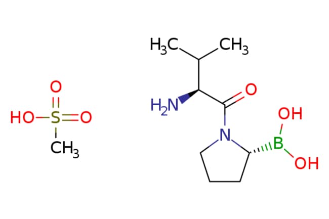 Pharmablock | [(2R)-1-[(2S)-2-amino-3-methyl-butanoyl]pyrrolidin-2-yl]boronic acid;methanesulfonic acid | 1g | 551234433 | PBEB0448-1 | | 150080-09-4 | MFCD13194906 | 310.170 | C10H23BN2O6S