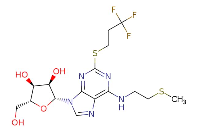 Ambeed / (2R3S4R5R)-2-(Hydroxymethyl)-5-(6-((2-(methylthio)ethyl)amino)-2-((333-trifluoropropyl)thio)-9H-purin-9-yl)tetrahydrofuran-34-diol / 1g / 552616109 / A174029 / / 163706-58-9 / MFCD15832982 / 469.500 / C16H22F3N5O4S2