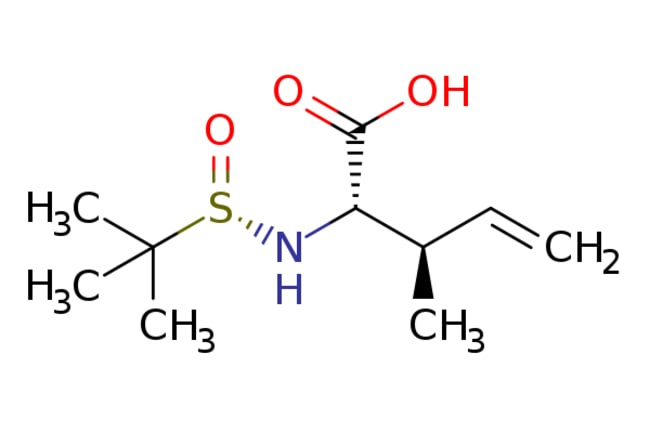 Ambeed / (2S3R)-2-(((S)-tert-Butylsulfinyl)amino)-3-methylpent-4-enoic acid / 1g / 628568228 / A1152327 / / 1461641-97-3 / [null] / 233.330 / C10H19NO3S