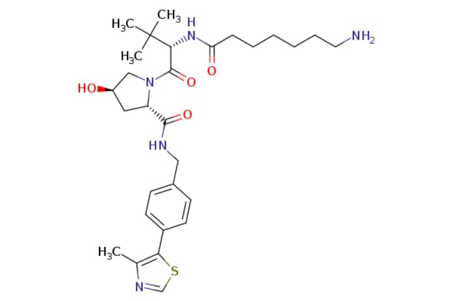 Ambeed / (2S4R)-1-((S)-2-(7-Aminoheptanamido)-33-dimethylbutanoyl)-4-hydroxy-N-(4-(4-methylthiazol-5-yl)benzyl)pyrrolidine-2-carboxamide / 100mg / 714082627 / A1371012 / / 2306389-03-5 / [null] / 557.750 / C29H43N5O4S