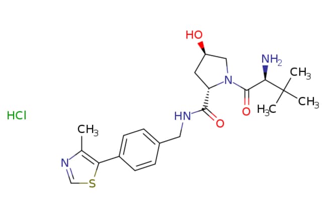 Ambeed / (2S4R)-1-((S)-2-Amino-33-dimethylbutanoyl)-4-hydroxy-N-(4-(4-methylthiazol-5-yl)benzyl)pyrrolidine-2-carboxamide hydrochloride / 1mg / 724427129 / A113059 / / 1448189-80-7 / MFCD30502992 / 467.030 / C22H31ClN4O3S