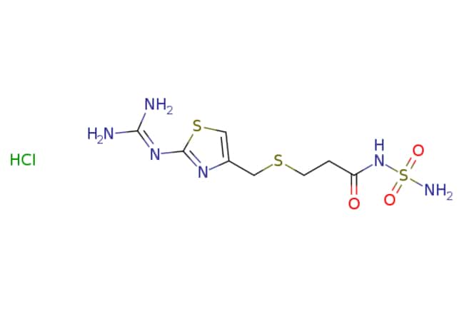 Toronto Research Chemicals | [3-[[[2-(Diaminomethyleneamino)-4-thiazolyl]methyl]thio]propionyl]sulfamide Hydrochloride | 100mg | 601593518 | D416369 | | 76824-17-4 | MFCD27966020 | 374.880 | C8H15ClN6O3S3
