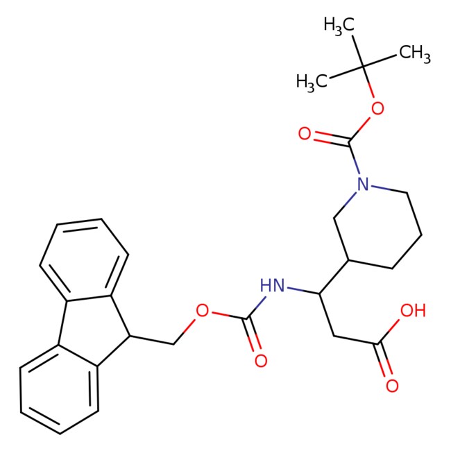 - IUPAC: 3-((((9H-fluoren-9-yl)methoxy)carbonyl)amino)-3-(1-(tert-butoxycarbonyl)piperidin-3-yl)propanoic acid