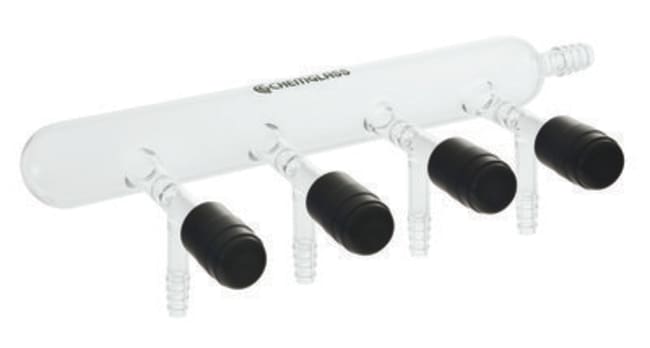 Chemglass Life Sciences Vacuum Manifold, Left Handed, 3 Ports, 0-4mm Chem-Cap Valve, 240mm Overall width