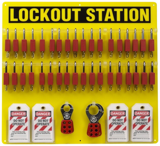 Includes | (3) 1 in safety hasp; (3) 1.5 in safety hasp; (36) 1.5 in. shackle red kd safety padlock; (36) lockout tag |