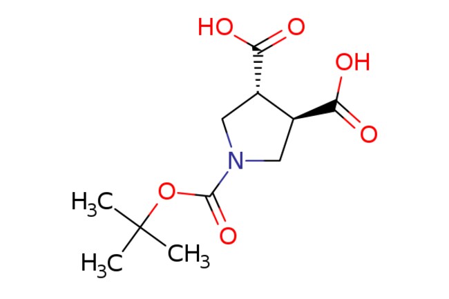 eMolecules Pharmablock / (3R4R)-1-tert-butoxycarbonylpyrrolidine-34-dicarboxylic acid / 25mg / 629469759 / PBB2191 / 0.000 / 1807916-65-9 / [null] / 259.258 / C11H17NO6