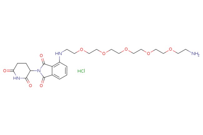 Ambeed / 4-((17-Amino-3691215-pentaoxaheptadecyl)amino)-2-(26-dioxopiperidin-3-yl)isoindoline-13-dione hydrochloride / 100mg / 794179747 / A1469655 / / 2357117-23-6 / [null] / 573.040 / C25H37ClN4O9