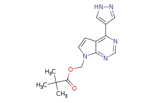 Ambeed / (4-(1H-Pyrazol-4-yl)-7H-pyrrolo[23-d]pyrimidin-7-yl)methyl pivalate / 250mg / 552628223 / A186222 / / 1146629-77-7 / MFCD28975987 / 299.334 / C15H17N5O2