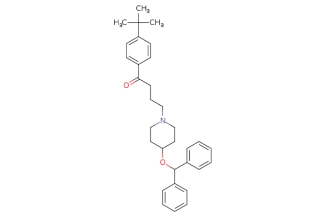 Ambeed / 4-(4-(Benzhydryloxy)piperidin-1-yl)-1-(4-(tert-butyl)phenyl)butan-1-one / 250mg / 552553637 / A124731 / / 90729-43-4 / MFCD00865661 / 469.669 / C32H39NO2
