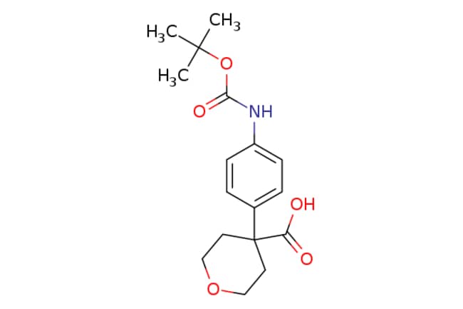 eMolecules JW PharmLab LLC / 4-(4-Boc-amino-phenyl)-tetrahydro-pyran-4-carboxylic acid / 100mg / 794066971 / 15R1234 / 97.000 / 2229401-94-7 / [null] / 321.373 / C17H23NO5