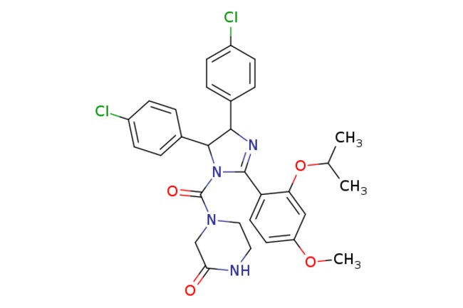 Ambeed / 4-(45-Bis(4-chlorophenyl)-2-(2-isopropoxy-4-methoxyphenyl)-45-dihydro-1H-imidazole-1-carbonyl)piperazin-2-one / 1mg / 686015621 / A157368 / / 890090-75-2 / MFCD07784509 / 581.490 / C30H30Cl2N4O4