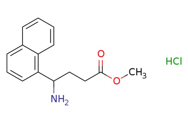 Oakwood Chemical | 4-Amino-4-naphthalen-1-yl-butyric acid methyl ester hydrochloride | 100mg | 537672421 | 011361 | | 811842-01-0 | MFCD03426353 | 279.760 | C15H18ClNO2