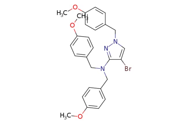 eMolecules Synthonix / 4-bromo-NN1-tris[(4-methoxyphenyl)methyl]pyrazol-3-amine / 100mg / 784553670 / AC78734 / / 930286-87-6 / MFCD22581522 / 522.443 / C27H28BrN3O3