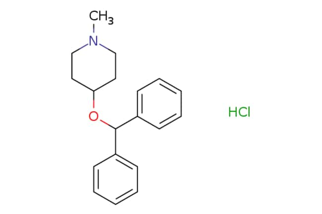 Oakwood Chemicals | 4-Diphenylmethoxy-1-methylpiperidine hydrochloride | 10g | 480134604 | 049905 | | 132-18-3 | MFCD00012835 | 317.860 | C19H24ClNO