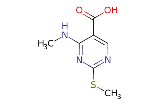 4-(Methylamino)-2-(methylthio)-5-pyrimidinecarboxylic acid | Ambeed | 863028-98-2 | MFCD11617313 | 199.230 | C7H9N3O2S | 95.000 | CNc1nc(SC)ncc1C(O)=O | 1g | 572936511