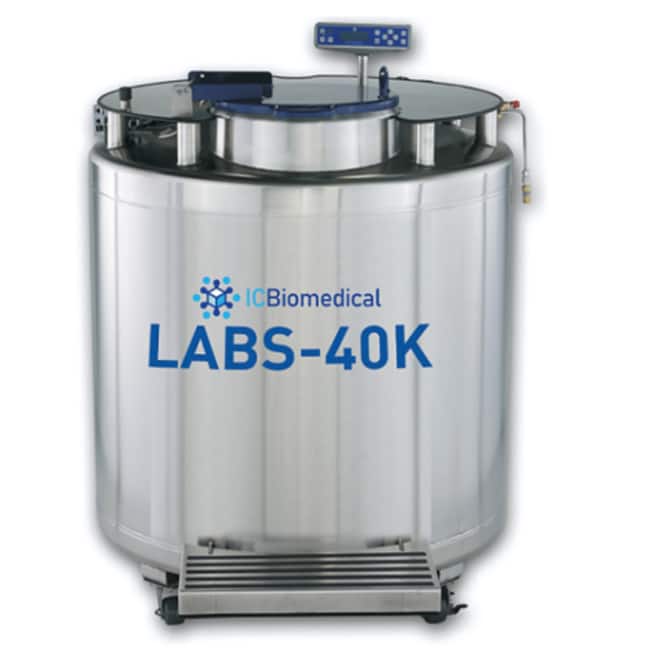 The 40K Cryogenic Freezer with CS200 Controller From IC Biomedical is a high-capacity LN2 system, storing up to 41,600 2ml vials at consistent near-LN2 temperatures (liquid or vapor). High efficiency and very low liquid nitrogen consumption ensure long-term sample viability. It features a smooth aluminum turntable for easy inventory access and a hinged, lockable lid with automatic defog. A stainless steel tabletop provides a work surface. The CS200 control system precisely monitors liquid levels and temperatures, offering data collection and robust sample security. An integral folding step and flexible fill hose enhance usability. This system is a high-performance solution for large-scale cryogenic sample management.