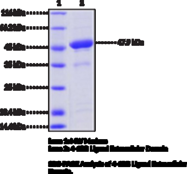 Source: Active recombinant N-terminal human IgG1 Fc-tagged 4-1BB ligand expressed in HEK293 cells • Amino acids: 71-254 • MW: 47.9 kDa