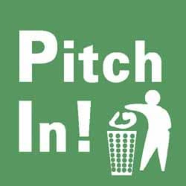 Restroom & Janitorial Label: "Pitch in!", Square, 4" Wide, 4" High