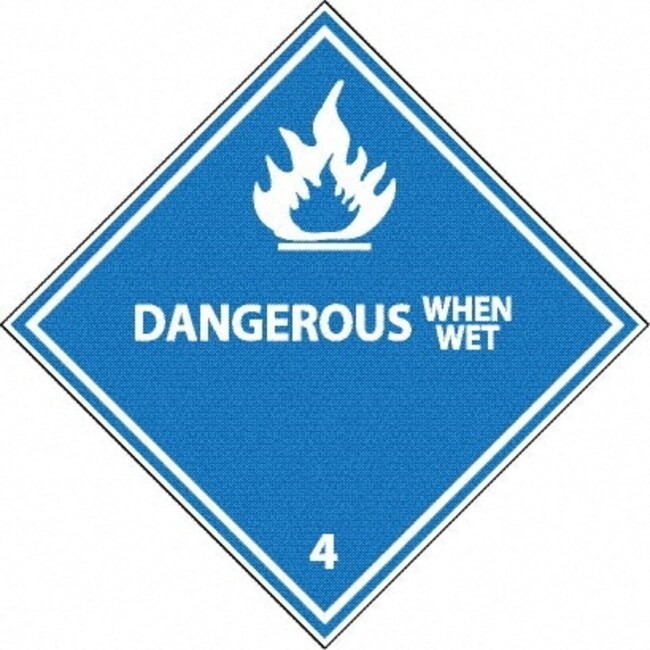 Shipping & DOT Labels; Message Type: DOT Shipping Label ; Legend: Dangerous When Wet ; Height (Inch): 4 ; Width (Inch): 4 ; Material: Pressure Sensitive Paper ; Pieces Per Roll: 500