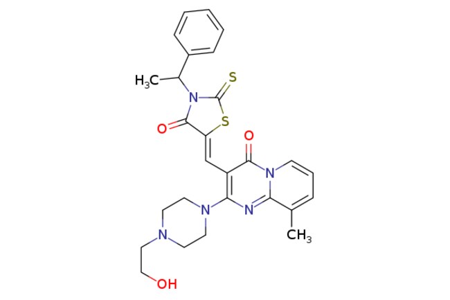 Oakwood Chemicals | 5-({2-[4-(2-hydroxyethyl)piperazin-1-yl]-9-methyl-4-oxo-4H-pyrido[1,2-a]pyrimidin-3-yl}methylidene)-3-(1-phenylethyl)-2-sulfanylidene- | 10mg | 480144226 | 094183 | | 477734-59-1 | MFCD03301080 | 535.680 | C27H29N5O3S2