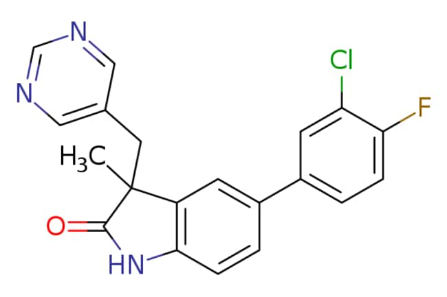 AstaTech / 5-(3-CHLORO-4-FLUOROPHENYL)-3-METHYL-3-(PYRIMIDIN-5-YLMETHYL)INDOLIN-2-ONE / 0.1g / 582616408 / 83391 / 95.000 / 1141080-83-2 / MFCD22572947 / 367.810 / C20H15ClFN3O