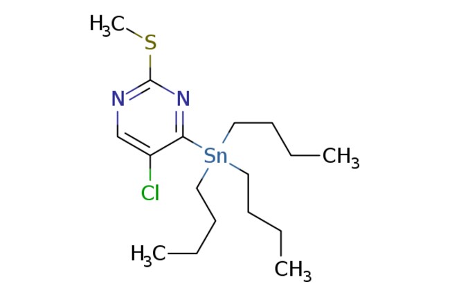 eMolecules Synthonix - Stock 5-Chloro-2-(methylthio)-4-(tributylstannyl)pyrimidine 5g 525913699 C5569 123061-47-2 MFCD01318962 449.670 C17H31ClN2SSn