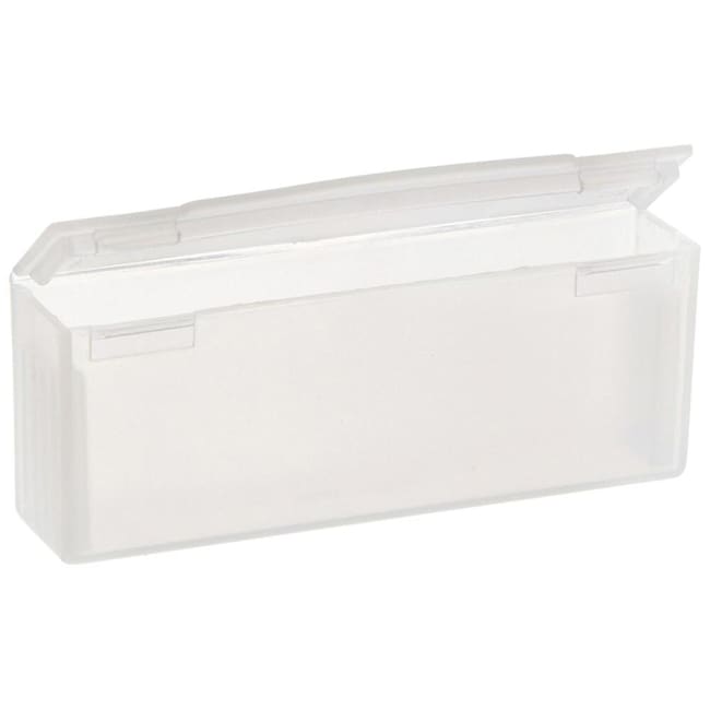 - Polypropylene container holds five standard slides (76 x 26 mm and 3 x 1 in.)