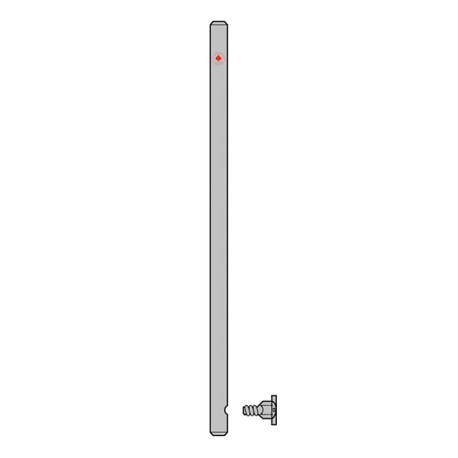 10mm O.D. 58cm stainless steel polished stir shaft, drilled type, with removable button. Stir Shaft has a 28cm flat section for use with agitators secured by set screws. For use with Trubore and PTFE bearings.