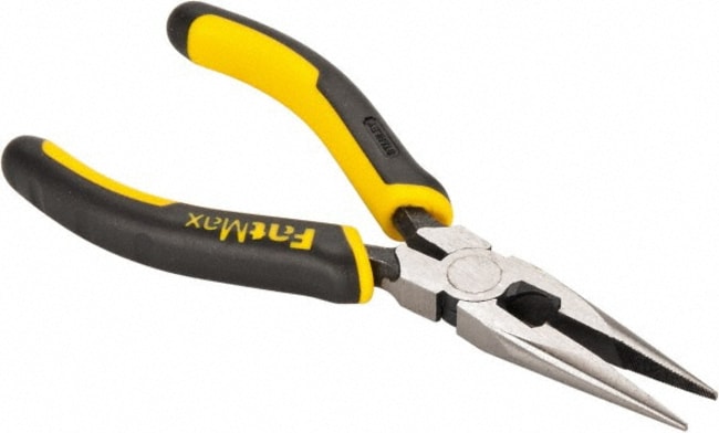 MSC Stanley 89-869 6-1/2" Overall Length, 2" Jaw Length x 11/16" Jaw Width, Long Nose Side Cutting Pliers Serrated Jaw, Standard Head, Bi-Material Cushion Grip Handles
