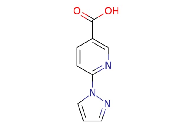 eMolecules Ambeed / 6-(1H-Pyrazol-1-yl)nicotinic acid / 1g / 491669379 / A471636 / / 253315-22-9 / MFCD00140749 / 189.174 / C9H7N3O2