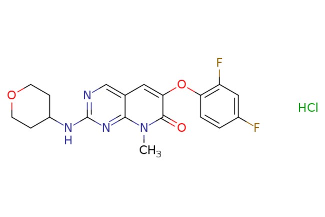 Ambeed / 6-(24-Difluorophenoxy)-8-methyl-2-((tetrahydro-2H-pyran-4-yl)amino)pyrido[23-d]pyrimidin-7(8H)-one hydrochloride / 50mg / 534583999 / A655605 / / 449808-64-4 / MFCD18711690 / 424.830 / C19H19ClF2N4O3