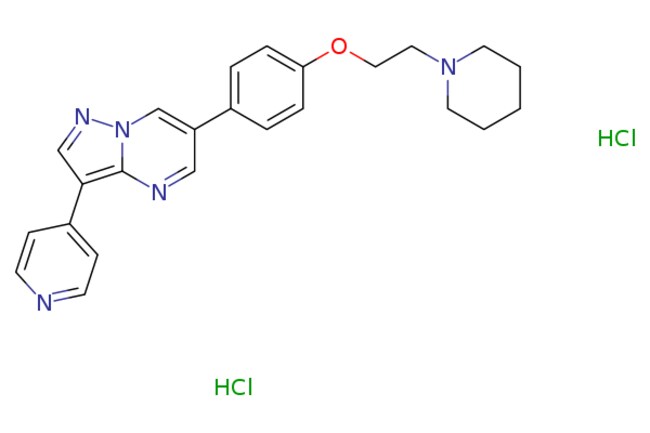 Ambeed / 6-(4-(2-(Piperidin-1-yl)ethoxy)phenyl)-3-(pyridin-4-yl)pyrazolo[15-a]pyrimidine dihydrochloride / 5mg / 525128250 / A213616 / / 1219168-18-9 / MFCD11112197 / 472.410 / C24H27Cl2N5O