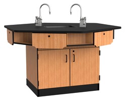 National Public Seating 6-Person Workstation, Phenolic Top, Cabinet Base, Epoxy Sink and Gas Fixtures, No Power