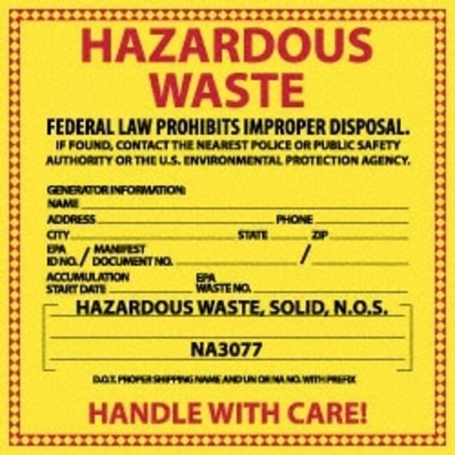 Hazardous Material Label: "Hazardous Waste - Federal &/or State Laws Prohibit Improper Disposal", Square, 6" Wide, 6" High