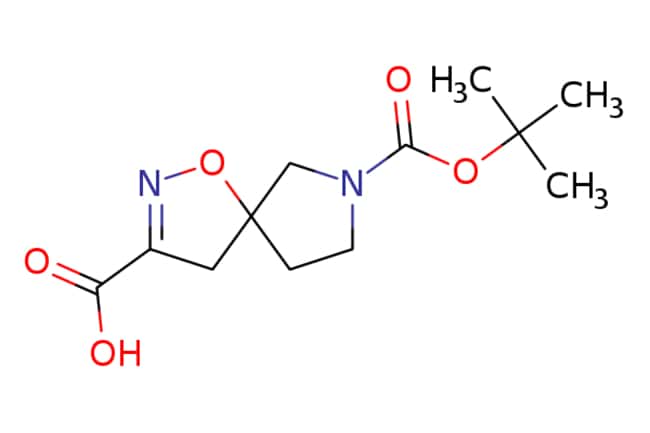 eMolecules Pharmablock / 7-[(tert-butoxy)carbonyl]-1-oxa-27-diazaspiro[4.4]non-2-ene-3-carboxylic acid / 25mg / 551273598 / PBN20121841 / 0.000 / 1160247-02-8 / MFCD12198541 / 270.285 / C12H18N2O5