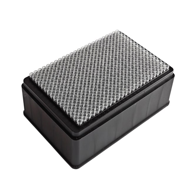 Alkali Scientifichas designed its Agilent P70-compatible automation tips to maximize performance with Agilent Bravo and Agilent VPrep robotic liquid handlers These tips do not require a separate labware definition and VWorks automation control software protocols remain unchanged The 384-format tip is fully interchangeable with the original Agilent P70 automation pipette tip The longest of the 384-format tip types Alkali Scientifics Agilent P70-compatible tip is ideal for protocols requiring larger volumes per transfer Its extended tip length enables access to taller labware such as deep-well plates Excellent performance is achieved even with volumes as low as 1 L Alkali Scientificmanufactures its Agilent Bravo and Agilent VPrep-compatible P70 tips using the highest-grade virgin polypropylene Our advanced polishing techniques minimize liquid retention without using releasing agents or additives Additionally all Agilent Bravo and Agilent VPrep-compatible tip boxes feature conduc
