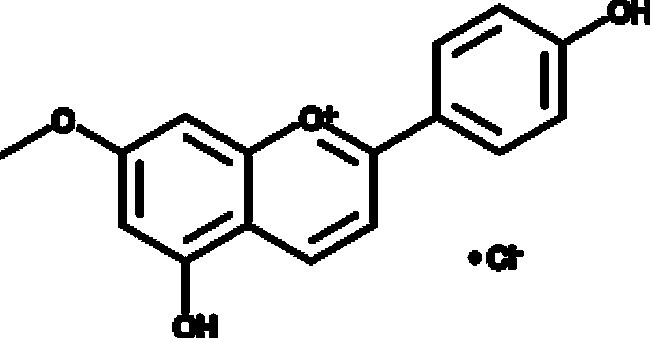 A 3-deoxyanthocyanin; active against radial growth of G. sorghi and spore germination of P. oryzae (IC50 = 50 ppm for both)