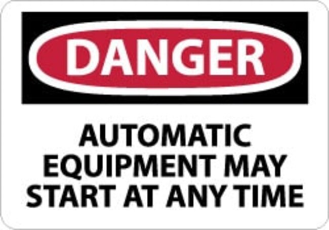 Sign: Rectangle, "Danger - Automatic Equipment May Start at Anytime"