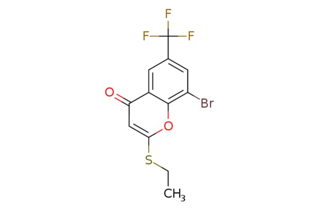 eMolecules Pharmablock / 8-bromo-2-ethylsulfanyl-6-(trifluoromethyl)chromen-4-one / 25mg / 716996302 / PBZF054 / 0.000 / 2715285-50-8 / [null] / 353.150 / C12H8BrF3O2S