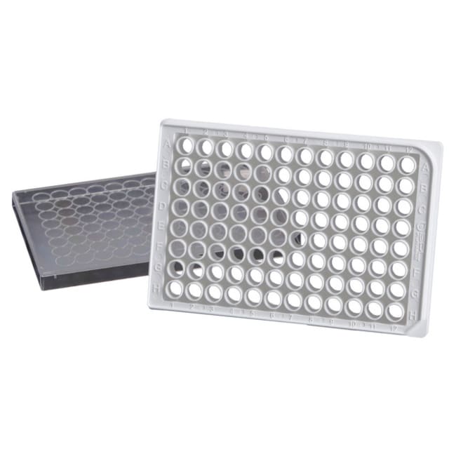 White plate / clear bottom. Sterile. Ideal plates for obtaining amplified signals in a luminescence assays while minimizing cross-talk. The highly transparent bottom provides an optimal environment for microscopic observation. Optimized surface technology for cell attachment and microscopic observation. Tissue Culture Treated for cell adhesion and attachment providing an ideal proliferation environment. ▪ White Wall and topside (PS) / Clear Bottom ▪ Bottom material: Optically Clear PS ▪ Designed to prevent cross contamination ▪ Effective gas exchange lid inner design ▪ Alphanumeric labeling ▪ sterile 5/pack ▪ Non – pyrogenic ▪ Non – cytotoxic ▪ DNase / RNase – free ▪ Human DNA – free