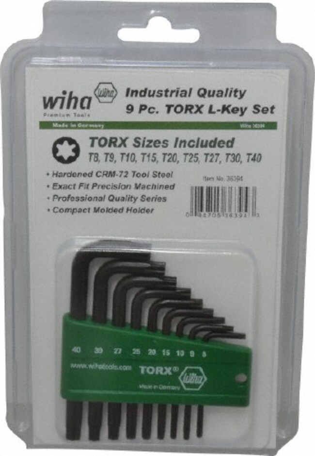 Wiha 36394 9 Piece T8 to T40 L-Key Short Arm Torx Key Set T8, T9, T10, T15, T20, T25, T27, T30, T40 Torx Size