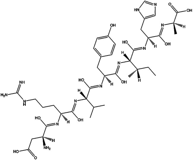 A 779 (CAS 159432-28-7) is a selective antagonist of the angiotensin-(1-7)/Mas receptor By competitively inhibiting angiotensin-(1-7) a bioactive peptide of the renin-angiotensin system (RAS) involved in cardiovascular and renal homeostasis A 779 enables detailed study of Mas receptor-mediated signaling In vivo A 779 blocks the antidiuretic and pressor effects of angiotensin-(1-7) in rats and modulates the response to bradykinin potentiation by ACE inhibition It has been used to explore interactions among angiotensin receptors and the role of Mas signaling in cardiovascular and renal physiology