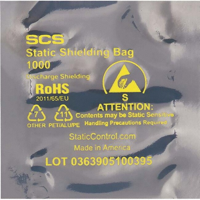 MSC Value Collection STC110 Pack of (1,000) 4" Long x 4" Wide, 3.1 mil Thick, Open Top Static Shield Bags Transparent, Metal-In, Standard Grade