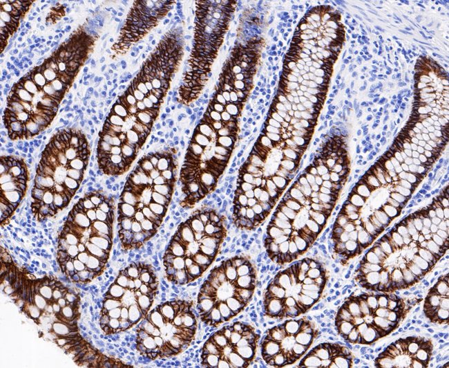 Positive Control: Human small intestine tissue, human colon tissue, human colon cancer tissue, human appendix tissue.