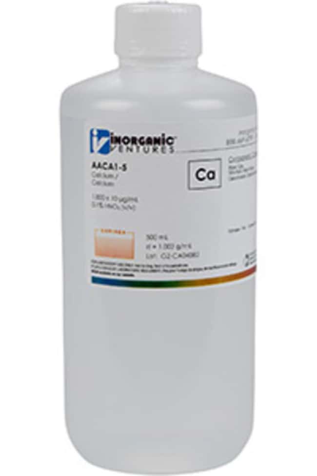 Inorganic Ventures' 1000 ppm (µg/mL) Calcium for AA is a 500mL reference material set in a nitric acid matrix for stability. This calcium standard is Traceable to NIST and manufactured in accordance with our stringent Quality Assurance guidelines. See Certificate of Analysis for expiration.