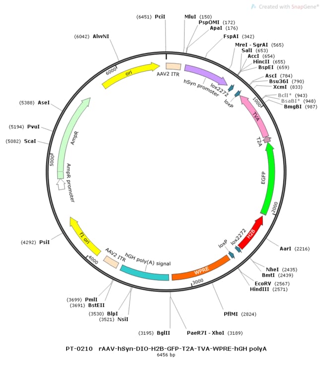 BIOHIPPO AAV-hSyn-DIO-H2B-EGFP-T2A-TVA-WPRE-hGH-polyA