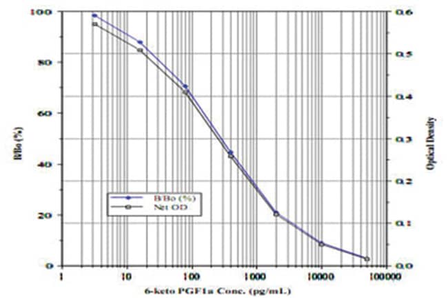 | Binding Capacity | The kit uses a polyclonal antibody to 6-keto-PGF1α to bind, in a competitive manner, the 6-keto-PGF1α in the standards or sample or an alkaline phosphatase molecule which has 6-keto-PGF1α covalently attached to it. |
