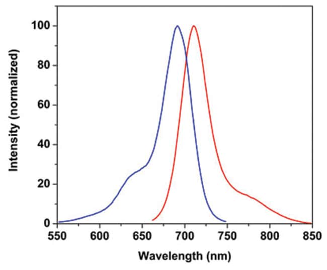 Description | Fluorescent dye that is water-soluble and forms stable Schiff Base with carbonyl group. In comparison with Alexa Fluor 700, Fluorescent Dye 700-I Hydrazide are brighter with stronger absorption at 633nm. Fluorescence emission of Fluorescent Dye 700-I Hydrazide is well separated from that of other commonly used red fluorophores, such as TAMRA, Fluorescent Dye 647-I and R-phycoerythrin, making it ideal for multi-color labeling. |
