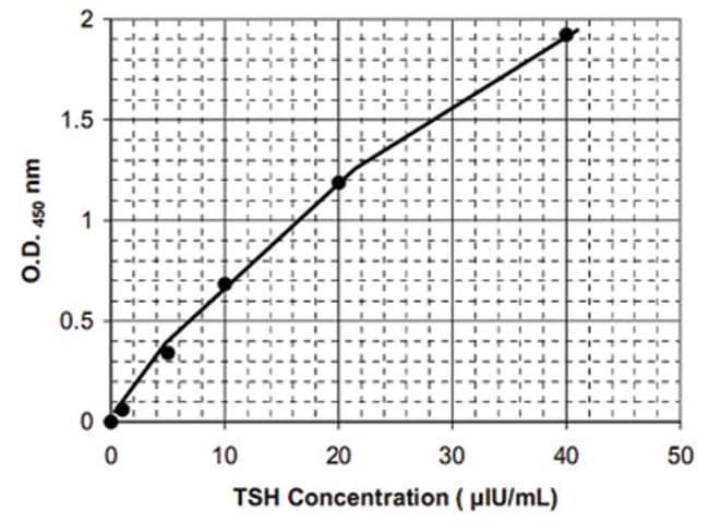 Includes | Antibody coated microwells 96 wells, TSH Conjugate (12mL), TSH Standard 40, 20,10, 5, 1 and 0μIU/mL for each, Substrate A (11mL), Substrate B (11mL), Stop Solution (14mL) |
