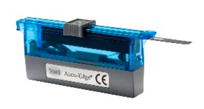 The Accu-Edge disposable low-profile blades by Sakura Finetek are compatible with all Accu-Edge blade holders. This product is ideal for microtomy, cryotomy, and sectioning specimens without striations, distortion, or chattering. It is sold in dispensers that can store 50 blades and distribute them in a few seconds. The previously used blade is then automatically ejected.